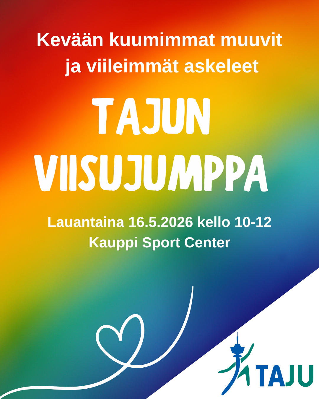 Tampereen Jumppatiimi TAJU ry on tamperelainen yli 2100 jäsenen harrasteliikuntaseura ja Tähtiseura. Tarjoamme kaikenikäisille mahdollisuuden harrastaa voimistelua, tanssia ja ryhmäliikuntaa. Toimintaamme kuuluu laaja valikoima erilaisia jumppia. Lisätietoa meistä
