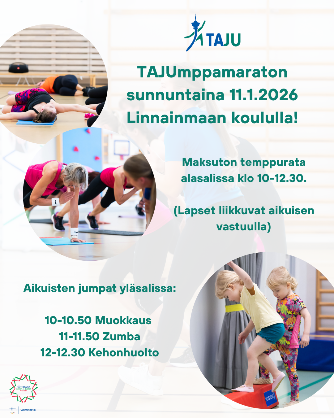 TAJUmppamaraton järjestetään jälleen - tule starttaamaan kevätkausi 2026 kanssamme! TAJUmppamaraton on perinteinen TAJUn kevätkauden aloitustapahtuma. Tapahtuma järjestetään sunnuntaina 11.1.2026…
