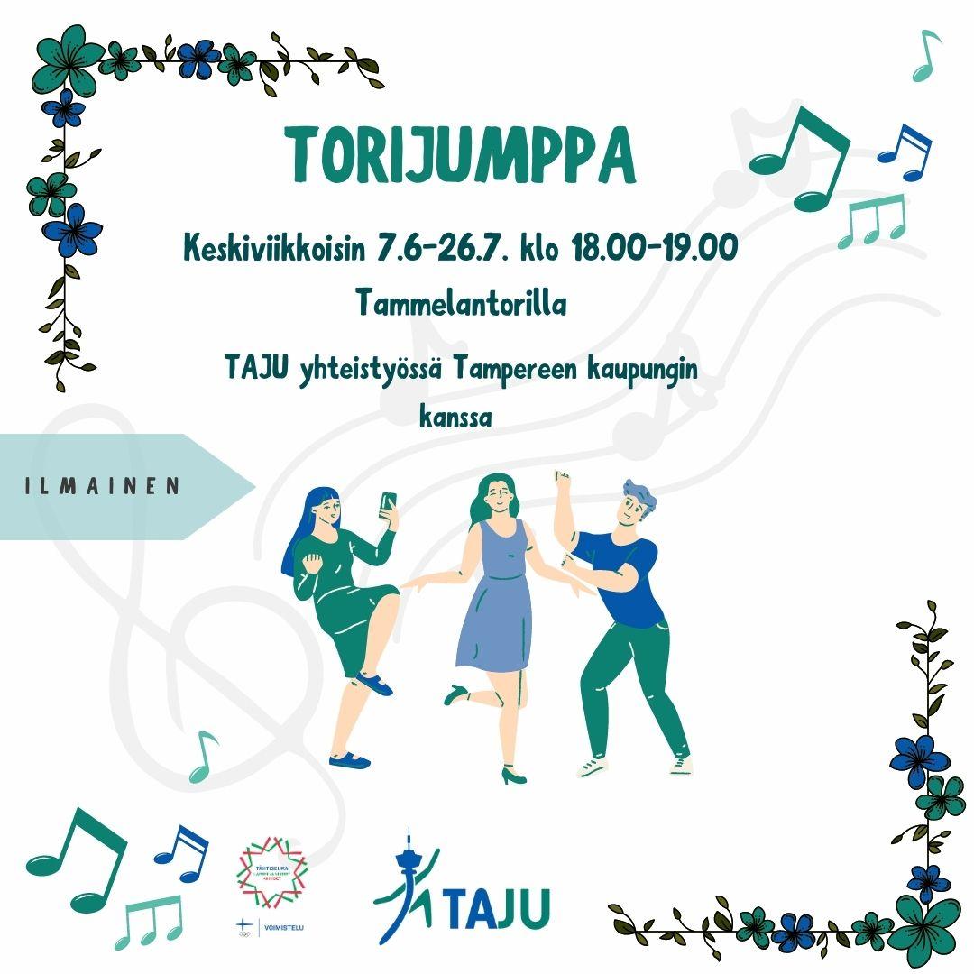 TAJU järjestää torijumppaa Tammelantorilla kesäkeskiviikkoisin 7.6.-26.7. klo 18.00-19.00. Jumppa on osa Tampereen kaupungin muuta toriohjelmaa ja jumpat järjestetään yhteistyössä kaupungin kanssa.