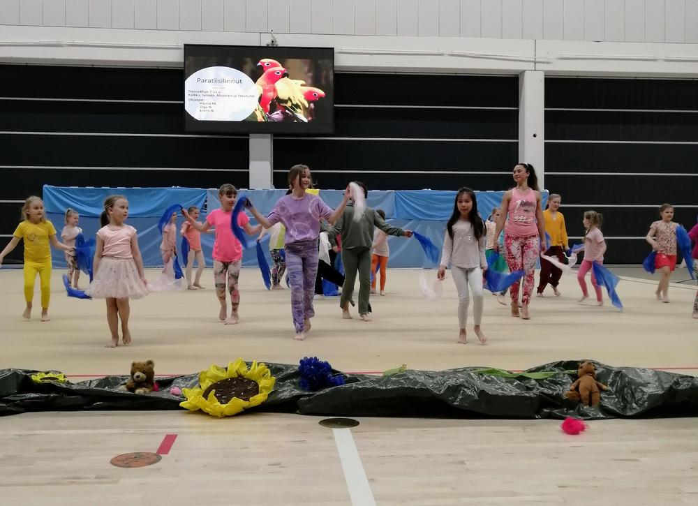 Kevätnäytöksessä esiintyi yhteensä 54 ryhmästä lapsia ja perheliikkujia. Esiintyjien lisäksi yleisöä paikalla oli noin 400 katsojaa.