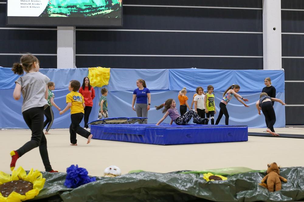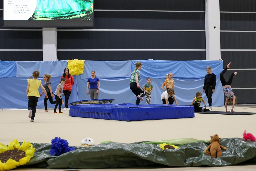 Kevätnäytöksessä esiintyi yhteensä 54 ryhmästä lapsia ja perheliikkujia. Esiintyjien lisäksi yleisöä paikalla oli noin 400 katsojaa.